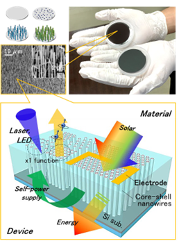 Based on the epitaxial growth of III-V compound semiconductors, we explore new electronic nanomaterials and hetero-structure. We thus try to establish materials of heterogeneous junction nanowires, high-efficiency electronic and photonic energy conversion, new-generation communication devices, and high-performance nano-electronics/photonics.